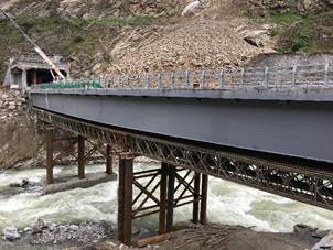 較場(chǎng)1號(hào)大橋位于疊溪隧道川主寺出口側(cè),本橋?yàn)樗畾Ш笾亟蛄?,新建橋梁采?孔77米簡(jiǎn)支鋼箱梁布置。本項(xiàng)目于2018年12月20日開工,目前鋼梁已架設(shè)完畢,橋面板澆筑完畢13天,項(xiàng)目業(yè)主要求本橋于近期通車。2019年5月30日至31日,公司橋隧處組織設(shè)計(jì)人員赴較場(chǎng)1號(hào)大橋設(shè)計(jì)回訪。