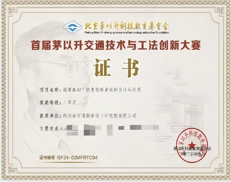 目前,該成果已榮獲“首屆茅以升交通技術與工法創(chuàng)新大賽”二等獎、中國公路學會“2024年公路隧道‘四新技術’重點推廣成果”,為構建資源節(jié)約型、環(huán)境友好型、低碳排放的綠色經濟體系提供了關鍵的材料基礎與技術支持。