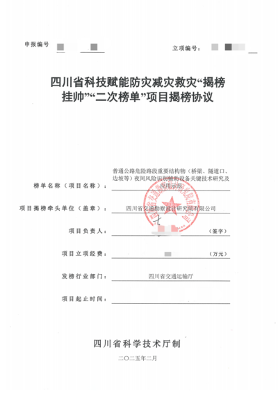 針對公路危險路段重要結(jié)構物(橋梁、隧道口、邊坡等)在夜間發(fā)生垮場、沉陷等突發(fā)異常事件后,由于視距受限或雨霧雪視線不良,機動車駕乘人員可能難以及時發(fā)現(xiàn)并采取緊急避險措施,進而造成人員傷亡的汛期交通安全保障難題,依托四川省科技賦能防災減災救災揭榜掛帥項目“普通公路危險路段重要結(jié)構物(橋梁、隧道口、邊坡等)夜間風險識別輔助設備關鍵技術研究及應用示范”,研發(fā)了輕量化能源自給式公路危險路段垮塌風險識別與示警技術與設備。該針對公路夜間垮塌導致重大人員數(shù)傷亡和財產(chǎn)損失問題,采用位移、傾角等傳感器直接感知公路結(jié)構垮塌現(xiàn)象并聯(lián)動示警和應急照明,輔助駕乘人員識別垮塌并緊急避險。示警設備具有低成本、高可靠、長壽命、輕維護的特點,自帶供電系統(tǒng),100m標準路段部署成本5-9萬元。項目成果已在四川省漢源縣、雅江縣、彭州市、樂山市國省道及汶馬高速等項目270余處工點應用,效果良好。