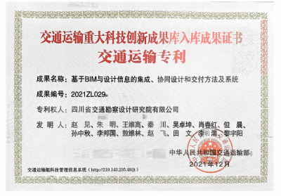 交通運輸重大科技創(chuàng)新成果庫入庫成果證書