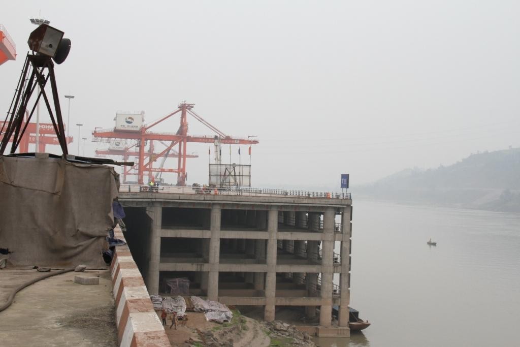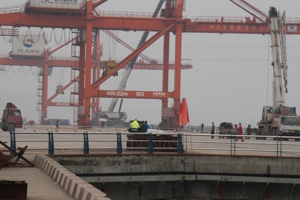 項目概況:四川宜賓港志誠作業(yè)區(qū)一期工程位于宜賓是翠屏區(qū)沙坪鎮(zhèn),距宜賓市區(qū)12公里。工程建設規(guī)模為建設1000t級多用途泊位4個,滾裝泊位1個(建設期可作為建筑材料進口泊位)。其中多用途泊位集裝箱設計通過能力22.5萬TEU/年,件雜設計通過能力220.0萬t/年,滾裝設計通過能力10.0萬輛/年,占用岸線1120m,一期工程總投資13.1億元。4個多用途泊位碼頭前沿均采用鋼筋砼樁基承臺及上部框架結構,框架總長435.4m,總寬34m。滾裝泊位位于多用途泊位上游,順岸布置下河坡道,坡道寬75m,長約350m。