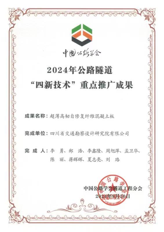 目前,該成果已榮獲“首屆茅以升交通技術(shù)與工法創(chuàng)新大賽”二等獎、中國公路學會“2024年公路隧道‘四新技術(shù)’重點推廣成果”,為構(gòu)建資源節(jié)約型、環(huán)境友好型、低碳排放的綠色經(jīng)濟體系提供了關(guān)鍵的材料基礎(chǔ)與技術(shù)支持。